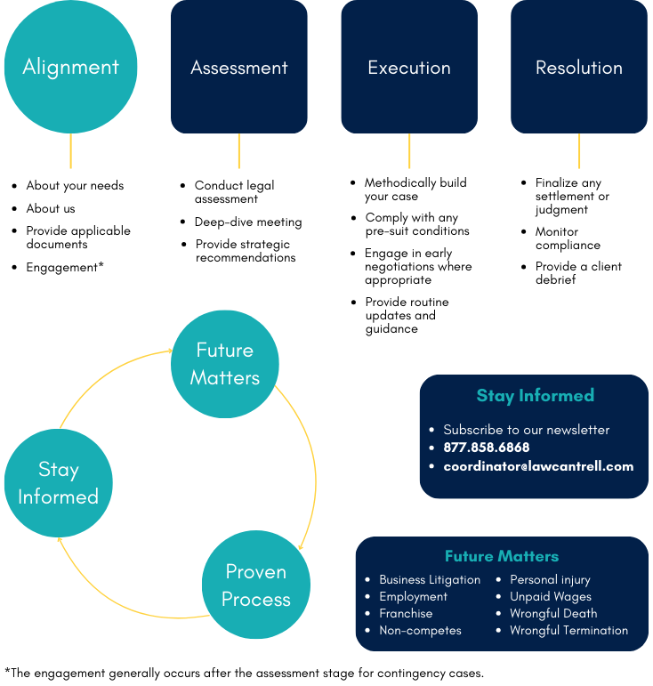 Choosing the right attorney depends on your legal issue, industry, and goals. Our team includes attorneys with focused experience in employment law, franchise law, and business litigation, allowing us to match you with the right advocate.